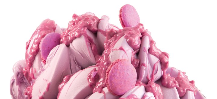 Una pasta alla mandorla biscottata che richiama il gusto del classico macaron, arricchita da variegato ai frutti di bosco dal colore vivace e da croccanti pezzi di macaron, per un raffinato gioco di consistenze.